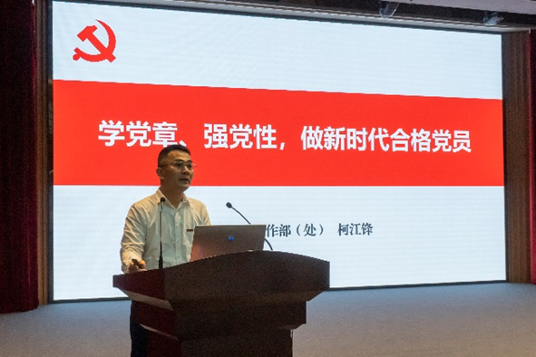 开班仪式结束后,校学生工作部副部长柯江锋老师为同学们讲授了《学党章、强党性,做新时代合格党员》第一讲专题党课。柯老师首先引用习总书记关于党章的重要论述给同学们强调党章对共产党员的重要地位。接着通过介绍党章修改的六大里程牌带领同学们深入了解党章历史。最后,柯老师教导同学们如何对照党章做一名合格党员。对照党章做一名合格党员需要党员不断学习、实践、反思和提高,只有不断提高自身素质和能力水平,才能更好地履行党员职责和义务,为党的事业发展做出更大的贡献。