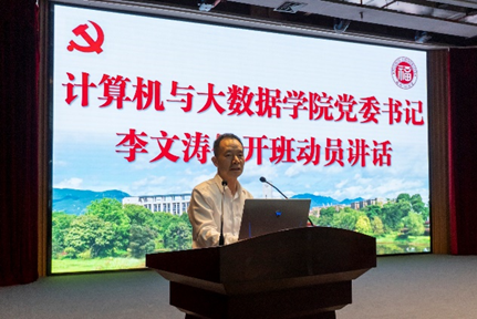 最后,由计算机与大数据党委书记李文涛作开班动员讲话。李文涛书记对在座的同学入选发展对象表示表示热烈欢迎和祝贺,同时也对同学们提出了三点要求:一、坚定理想信念,端正入党动机,信仰共产主义和中国特色社会主义。运用马克思主义立场、观点、方法,学习
