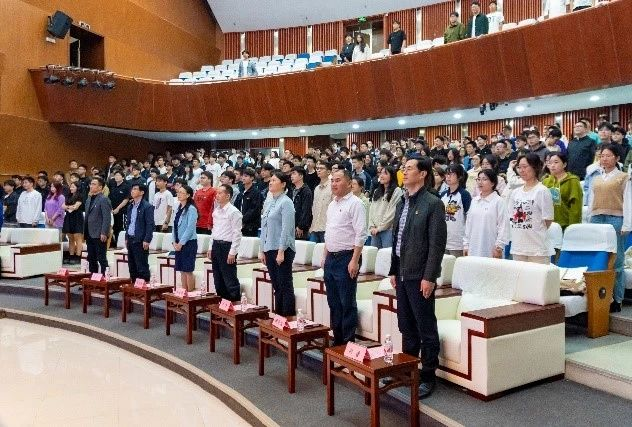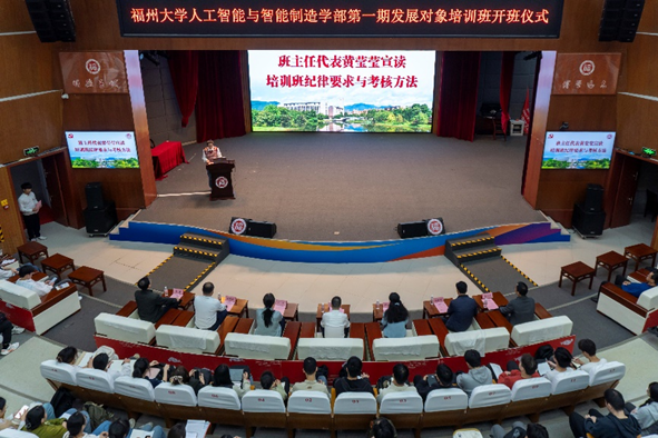 3月29日,由偷拍视频 主办,机械工程及自动化学院、物理与信息工程学院、计算机与大数据学院、数学统计学院协办的人工智能与智能制造学部第一期发展对象培训班开班仪式于偷拍视频 图书馆博学厅召开。出席本次开班仪式的领导老师有计算机党委书记李文涛、机械学院党委书记叶青、数统学院党委书记郑世珠、机械学院党委副书记孙鋆、计算机学院党委副书记傅茂松、数字技术管理办公室副主任曹乐平、电气学院党委副书记钟钛申及各学院相关领导老师。来自6个学院共293名发展对象参加此次开班仪式,本次会议由电气学院辅导员黄莹莹老师主持。