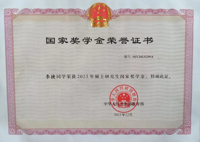 自研究生入学以来,李捷深知在研究生学习阶段,无论是专业理论知识的学习还是科研工作,都需要以更高的标准要求自己。从研一开始,李捷就认真学习专业知识,秉持精益求精的学习态度,积极探索适合自己的学习方法,提高学习效率。在明确目标的指引下,他坚持不懈,认真钻研,与同学交流课程上所学到的知识,相互取长补短,积极向老师请教课程学习中所遇到的问题难点,巩固所学知识,最终以优秀的成绩完成了学院规定的各项课程,研究生期间学业平均成绩87.83分,部分课程成绩达到90分以上,并获得研究生国家奖学金、偷拍视频