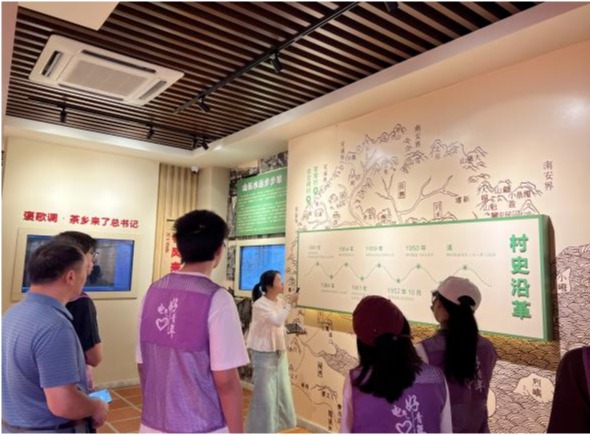 7月8日上午,实践队成员沿着崎岖盘山路,驱车一个多小时,来到同安区莲花镇军营村的高山党校初心使命馆进行参观学习。在讲解员的讲解下,聆听乡村振兴之故事,深刻领悟了习近平总书记心系群众、实事求是、攻坚克难的精神。军营村,曾经的贫困村,时任厦门市委常委、副市长的习近平同志曾经专门走访,做出了“山上戴帽,山下开发”的重要指示:要根据村里实际情况,大力发展经济作物,同时也要发展集体经济;要植树造林,多种果多种茶。如今的军营村,摇身已变成厦门市山青、水秀、村美、民富的后花园,先后获评了全国“一村一品”示范村、“中国最美休闲乡村”、全国“文明村”、省“生态村”、省“美丽乡村文明建设”典范村。