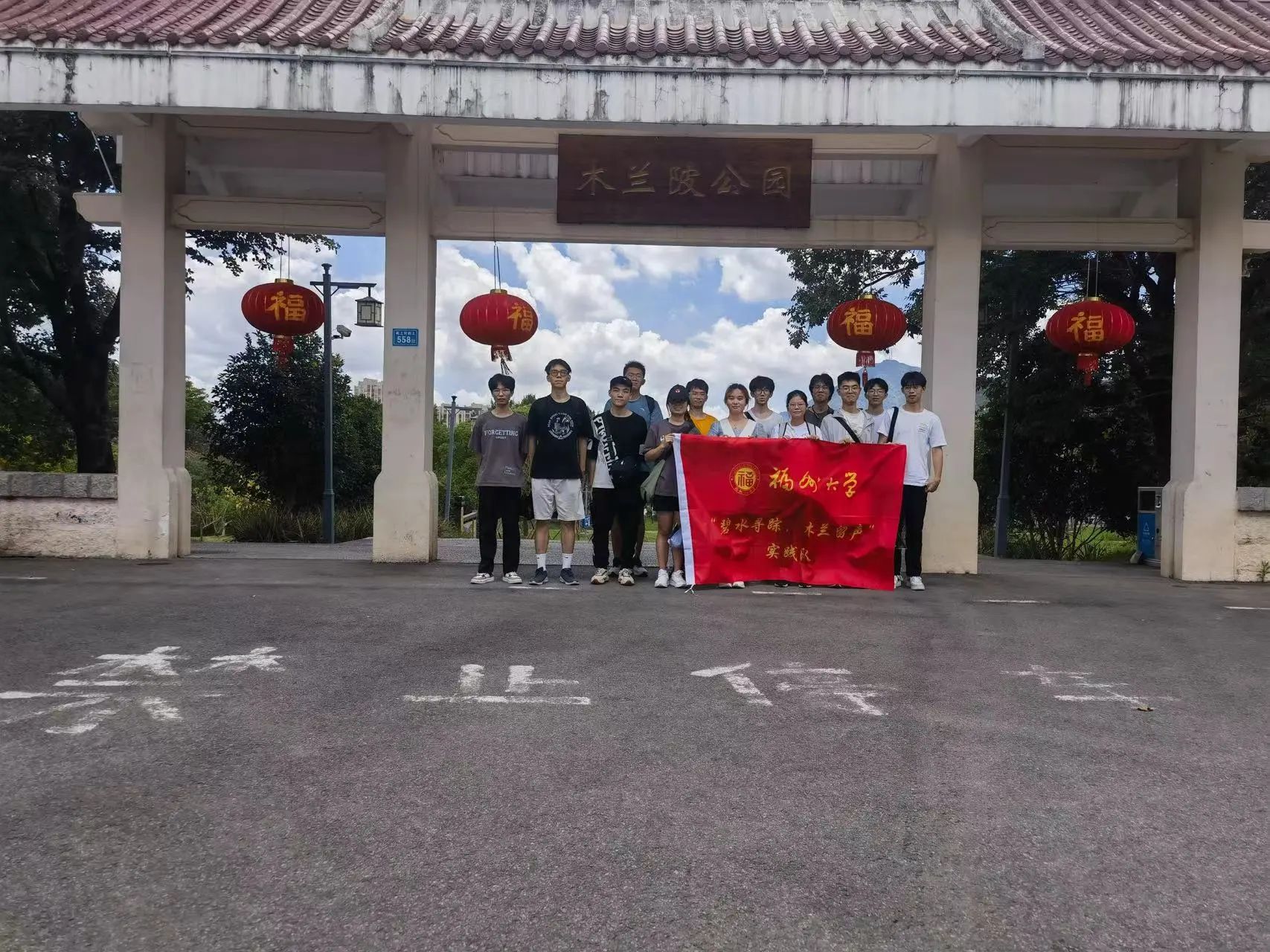 图为队员于大门口进行合照