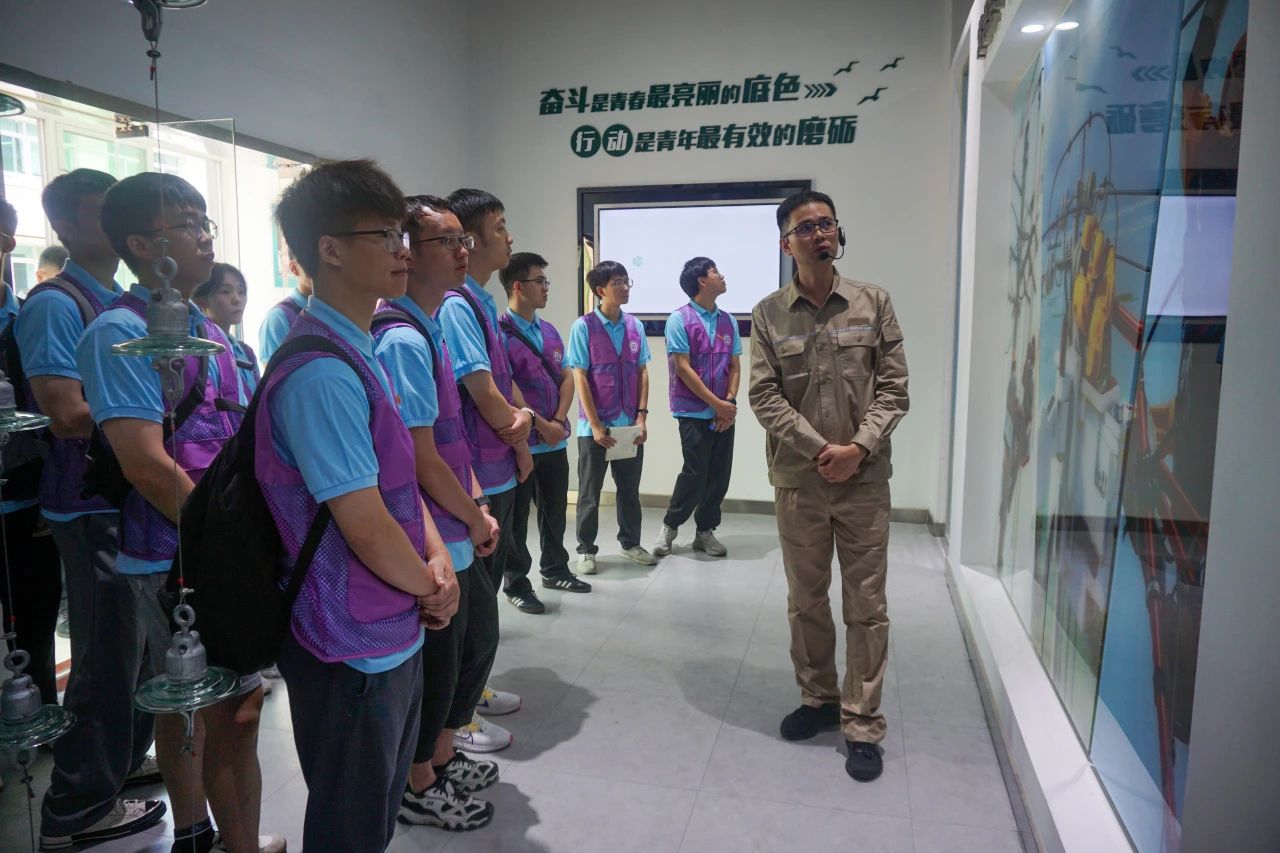 扎根一线创新创效,独具匠心育新育人。国网福州供电公司输电运检中心,郭文忠副校长和实践队师生参观了全国劳模、国网楷模冯振波劳模创新工作室,工作人员向实践队讲述冯振波师傅身体力行地践行“带电铁人”思想朴实、技能扎实、作风务实的三实精神,带领班组成员上高山、爬高塔,有效解决实际工作中遇到的问题,推动了企业生产水平和效益提升,生动展示冯振波师傅在摸索中创新、在实干中突破的工匠精神。