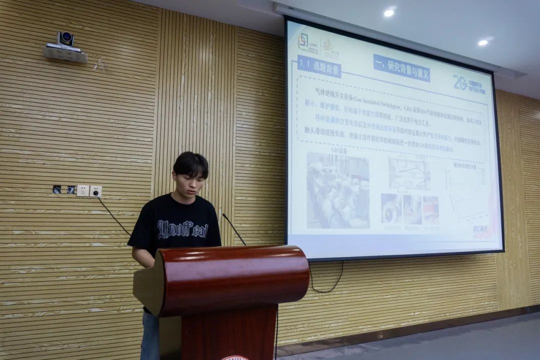 在答辩现场,参赛选手以扎实的研究成果展开激烈角逐。身着正装的选手依次登台,通过精心制作的PPT全面阐述项目的背景意义、技术方案与创新价值——涵盖气体绝缘开关设备的机械结构优化、无线充电系统的异物检测技术、航空级无损检测传感器的设计,以及新型配电系统的故障自愈方案等多个前沿方向。每位选手在答辩过程中,不仅系统呈现了技术路径与实验数据,更从容应对评委关于技术可行性与应用场景的深度提问。