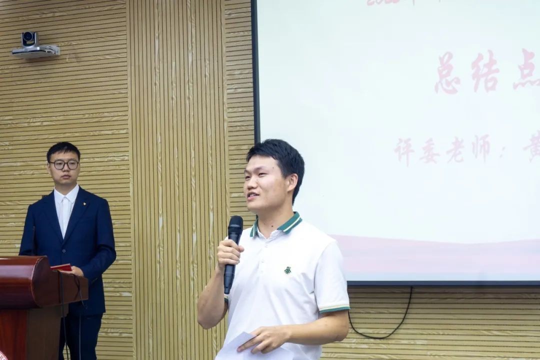 在所有参赛选手讲解结束后,黄异副教授为这次比赛进行了总结和点评。黄老师在点评中高度肯定了参赛选手的出色表现,特别指出本届赛事呈现出三大显著特点:一是技术创新性强,涌现出非法智能机制、无线充电集成系统等前沿技术应用,以及元宇宙金融分析等跨学科探索成果;二是作品完成度高,各团队的硬件系统和软件系统都展现出更优的整合性,实物作品更加完善;三是团队协作默契,答辩逻辑清晰,部分团队还通过视频展示增强了表现力。同时,黄老师也提出了建设性建议,强调需要加强技术理论与工程实践的紧密结合,在汇报时应更注重问题背景的阐述;建议优化作品展示方案,提升功能演示效果;指出论文写作需要更加规范严谨,并建议作品研发要更注重实际应用价值。最后,黄老师对所有参赛研究生寄予厚望,祝愿大家在今后的学术研究和竞赛中取得更加优异的成绩。