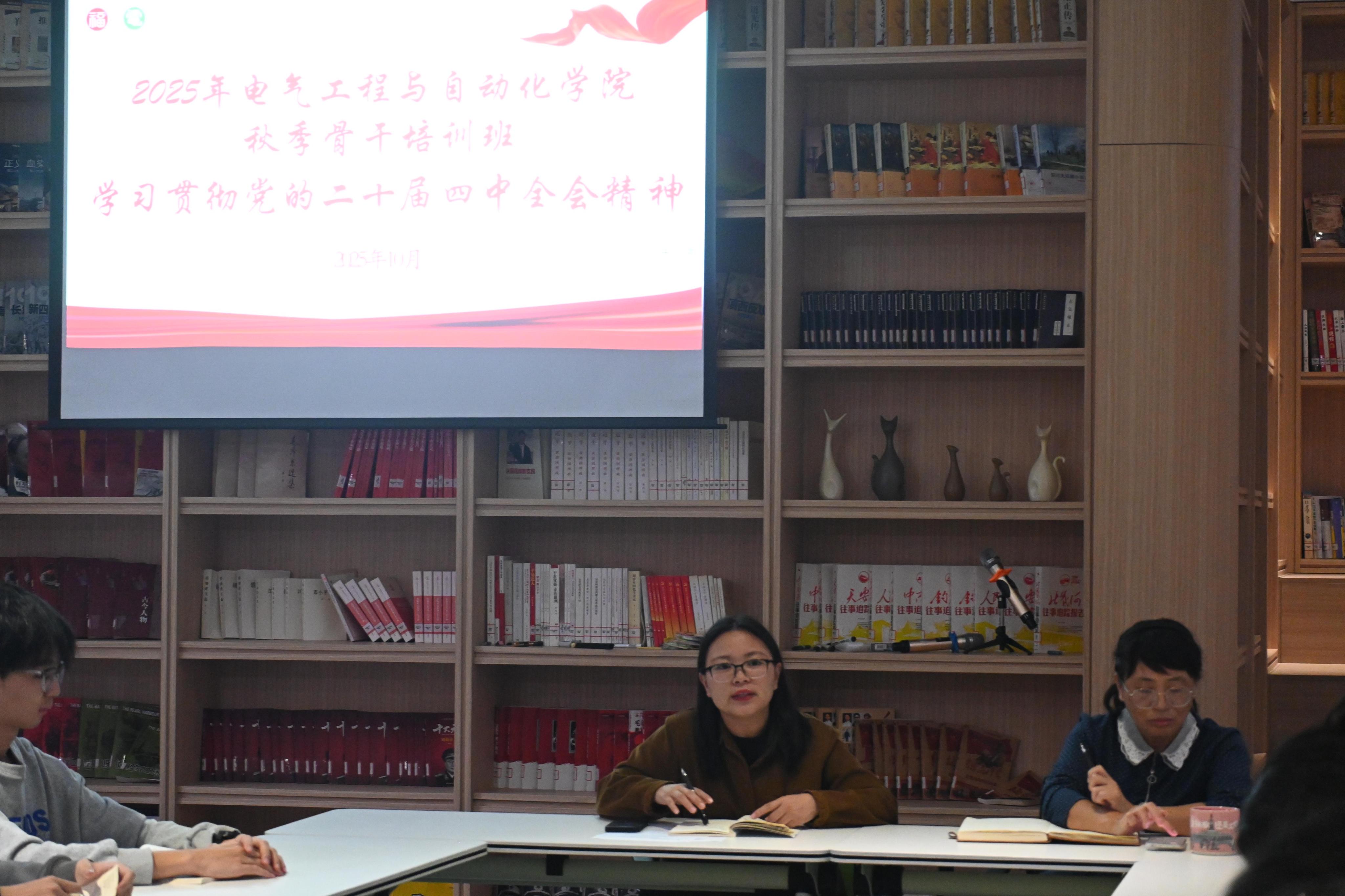 为深入学习贯彻党的二十届四中全会精神,助力学生骨干明晰“学业标杆”与“服务先锋”的双重角色,2025年10月30日下午,电气学院于新楚楼青马研读社组织开展党的二十届四中全会精神专题学习会。院党委副书记杜领军、政工干部、学生骨干共同参会学习。