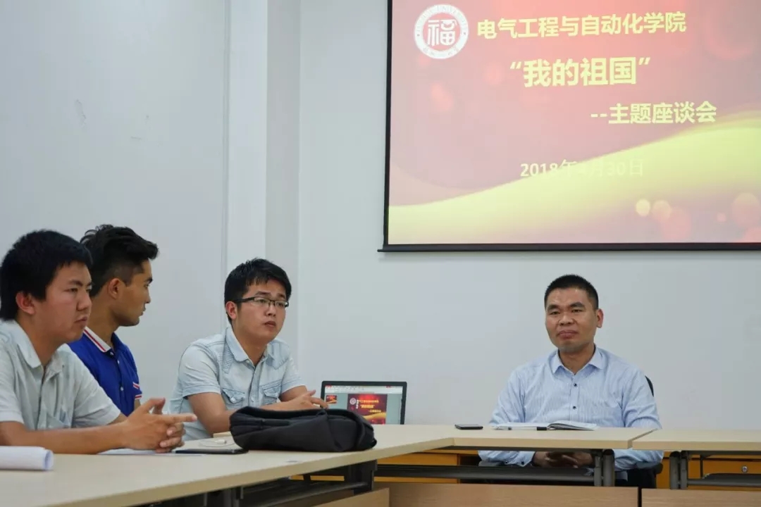 在新楚楼北211会议室召开了“我的祖国”主题座谈会,学院团委书记沈庆斌老师主持本次座谈会,2016级辅导员陈荟芳老师、2017级兼职辅导员林建业老师、电气学院少数民族学生代表、数字中国峰会志愿者代表、各年级学生代表和两委学生会干部代表参加了本次座谈会。