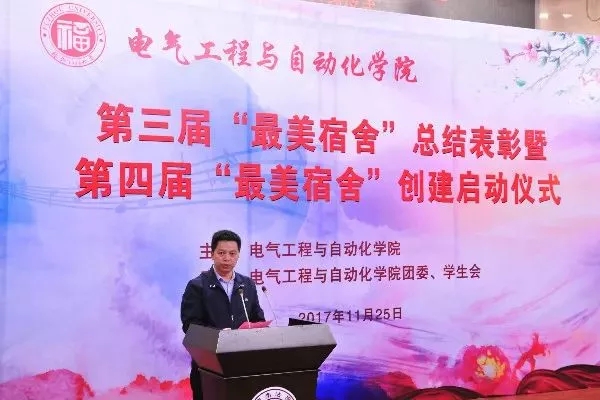 大会以各个最美宿舍的视频锦集作为开场,让观众共赏最美宿舍的风采。随后,院学生会主席李泽蓬同学介绍了最美宿舍开展情况,并由电气学院党委副书记黄国辉老师宣读“最美宿舍”表彰决定。