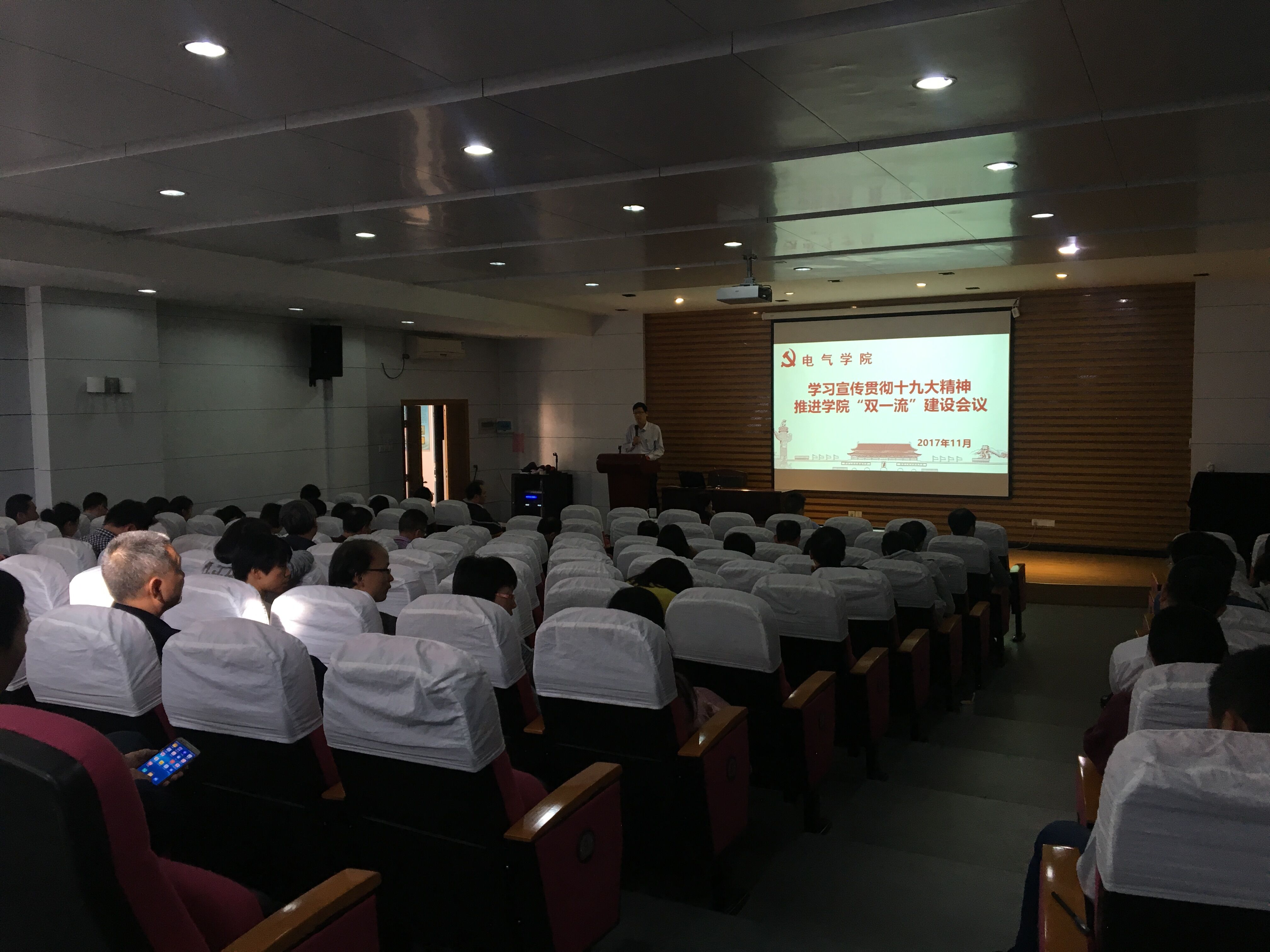 11月9日,电气学院召开全体教职工大会,学习十九大报告精神,部署学院“双一流”建设相关事宜。