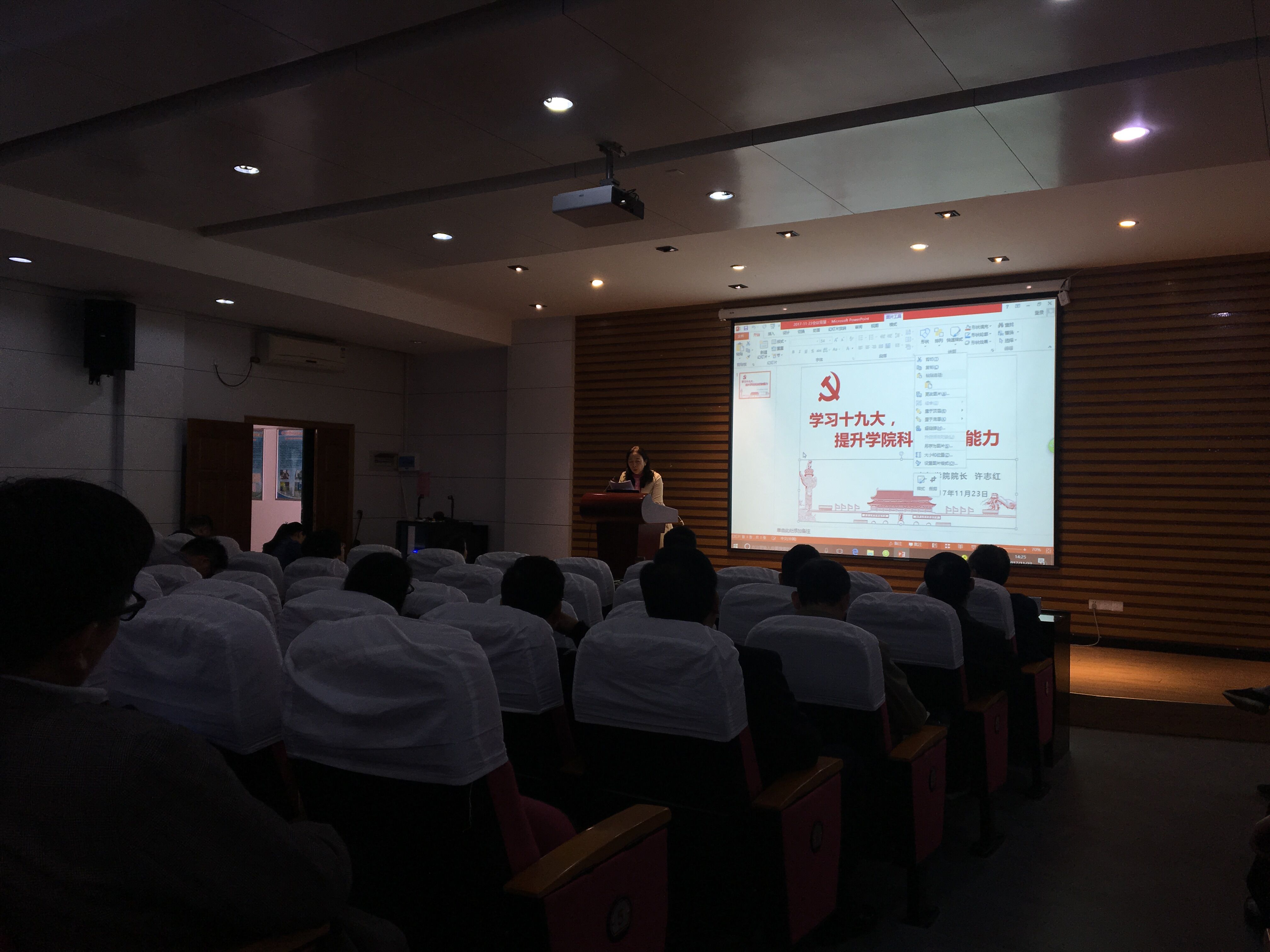 11月23日,电气学院召开了“学习十九大精神,提升学院科技创新能力 ”学习报告会,会议由院长许志红教授作主题发言,全院教职工参加了会议。