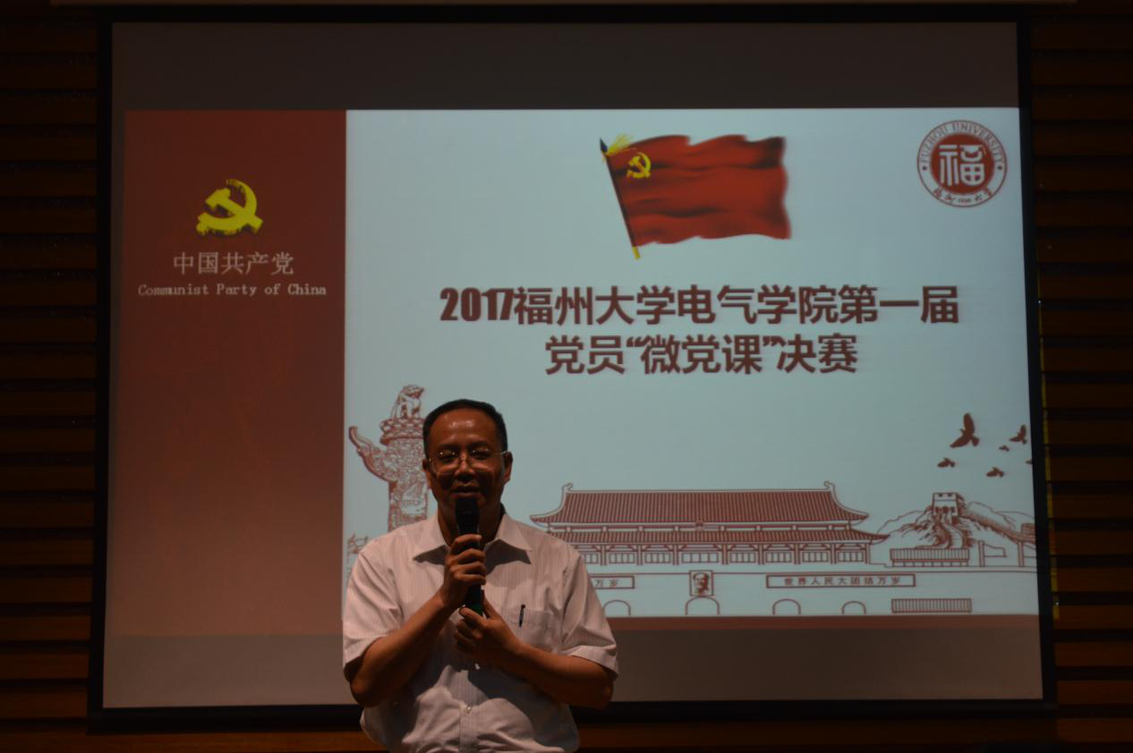 党委副书记黄国辉老师担任比赛评委。学院党委书记何希耕研究员莅临比赛现场。比赛中,各位参赛选手结合身边实际,题材广泛,内容娴熟,通过以小见大、以微见深、深入浅出、旁征博引的讲解方式,为在场每一位观众讲授了一场生动的微党课。经过激烈的角逐,最终来自电气工程第三研究生党支部的叶坚坚同学的党课“担起责任 做合格共产党员”获得第一名;来自电力研究生党支部的任建华同学、电机电器研究生党支部的黄李威同学和2014级本科学生党支部的胡启帆同学获得第二名。