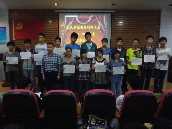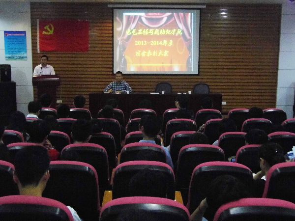 电气学院2013-2014年度宿舍表彰大会在新楚楼北230召开。电气学院党委副书记潘志辉老师、电气学院团委副书记沈庆斌老师以及电气学院辅导员林燕喜老师出席了本次大会。与会的同学有舍代会委员会委员、楼委会成员、勤工俭学人员以及大一各宿舍代表等。