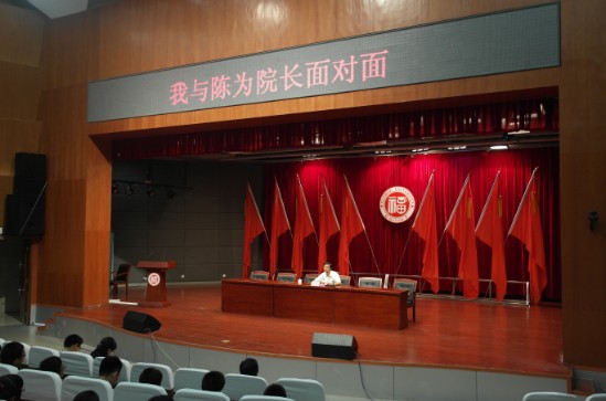 随后,进入“我与陈为院长面对面”的环节,院长陈为教授以聊天的方式与新生们交流看法。全场气氛轻松,院长以幽默的话语引来了一阵阵掌声和笑声。整个“我与院长面对面”的环节进行了一个多小时,在新生们意犹未尽的掌声中结束。