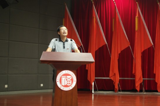 学生代表发言之后,由王武教授代表学院老师讲话,希望新生们在大学里能够刻苦求学、奋发图强,争取优异成绩。