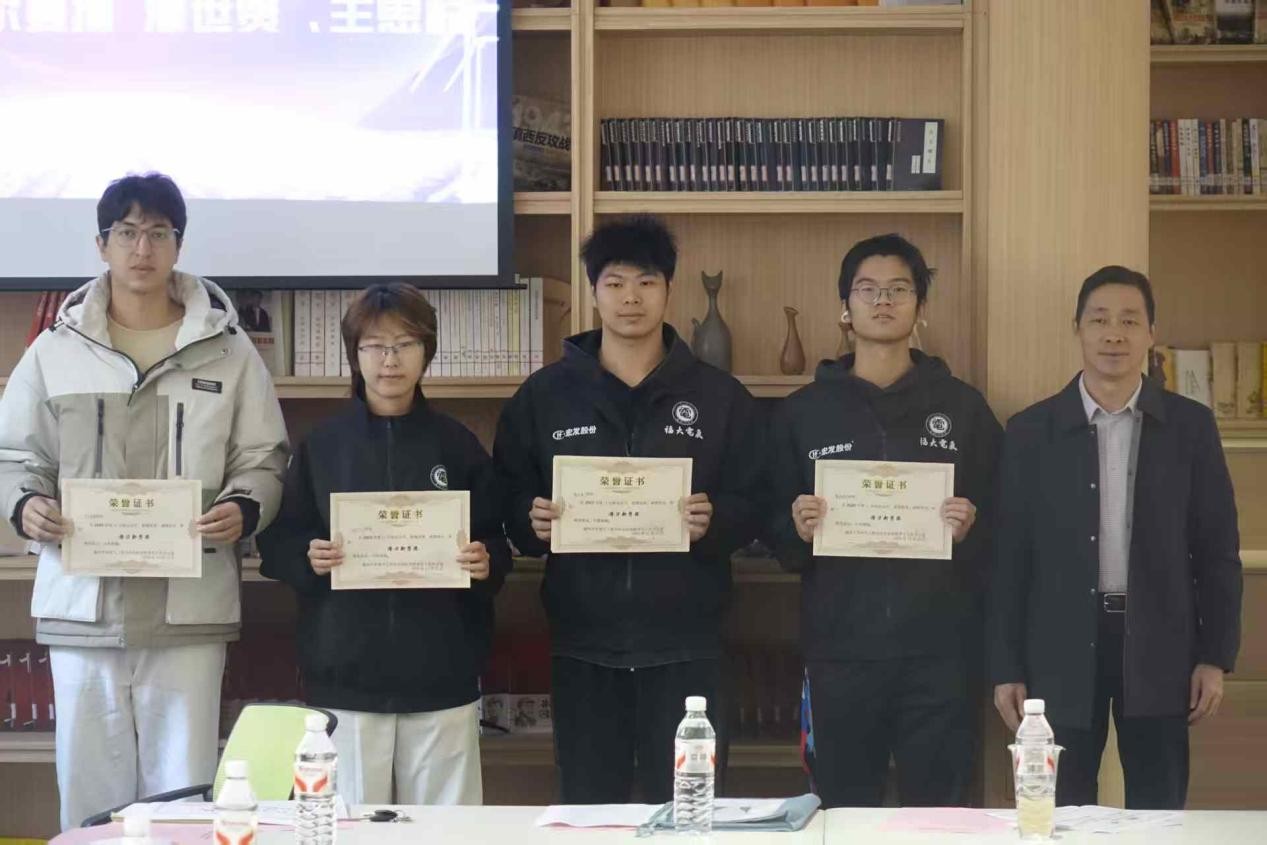 在青马研读社举行第54届校田径运动会表彰总结会。院党委书记潘志辉、院党委副书记杜领军、院团委副书记梁艳华、辅导员李剑峰老师和电气学院田径队全体成员出席本次大会。会议由院党委副书记杜领军主持。