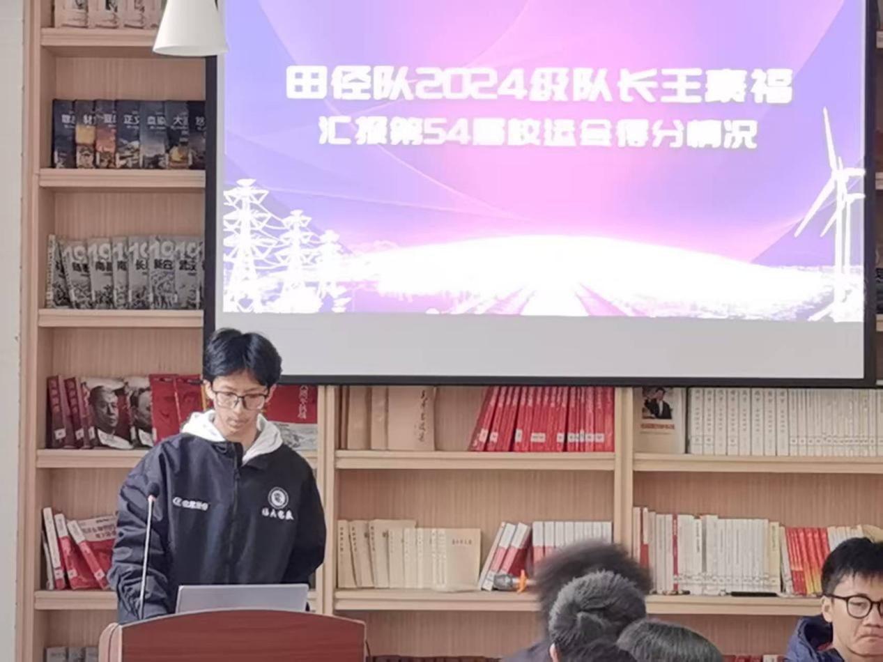 随后,田径队2024级队长王豪福汇报了本届校运会的得分情况,清晰地展现了团队在各项目中的诸多成果:在本届校运会中,偷拍视频