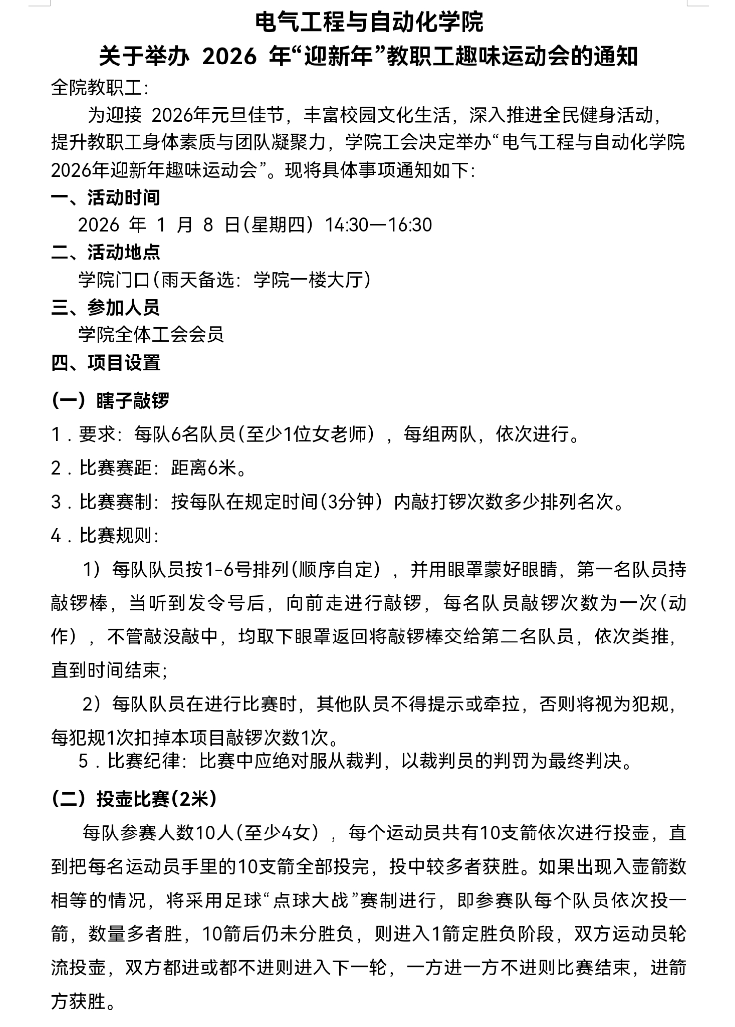 偷拍视频 关于举办 2026 年“迎新年”教职工趣味运动会的通知