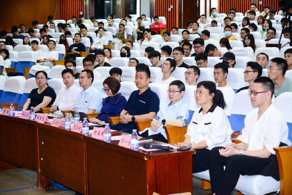 接着,四位企业专家依次代表各自所在企业分享各自公司情况及赛事命题。飞腾信息技术有限公司的钱程东总监作《立潮头数字新基建,弄潮儿中国芯飞腾》主题发言,他的发言中为我们讲述了飞腾这家芯片公司的进步发展,并为本次研电赛提供了“飞腾杯”赛题;景嘉微电子股份有限公司石大勇副总经理给在场的同学们介绍了公司的GPU发展史,现阶段主要是研发面向人工智能、通用计算机的图形处理芯片,本次竞赛的命题有:基于射频信号的行为感知系统和手语识别系统;龙芯中科技术股份有限公司叶骐宁总监谈到龙芯团队的发展历程以及结合市场需要研制的CPU系列产品,为大赛的参赛队伍提供龙芯派二代开发板,希望同学们的作品可以真正解决软硬件的实际问题;MathWorks中国分公司学生竞赛负责人汪丽萍博士基于matlab和simulink的智能应用与设计,为我们展示了算法开发给我们生活带来的改变。